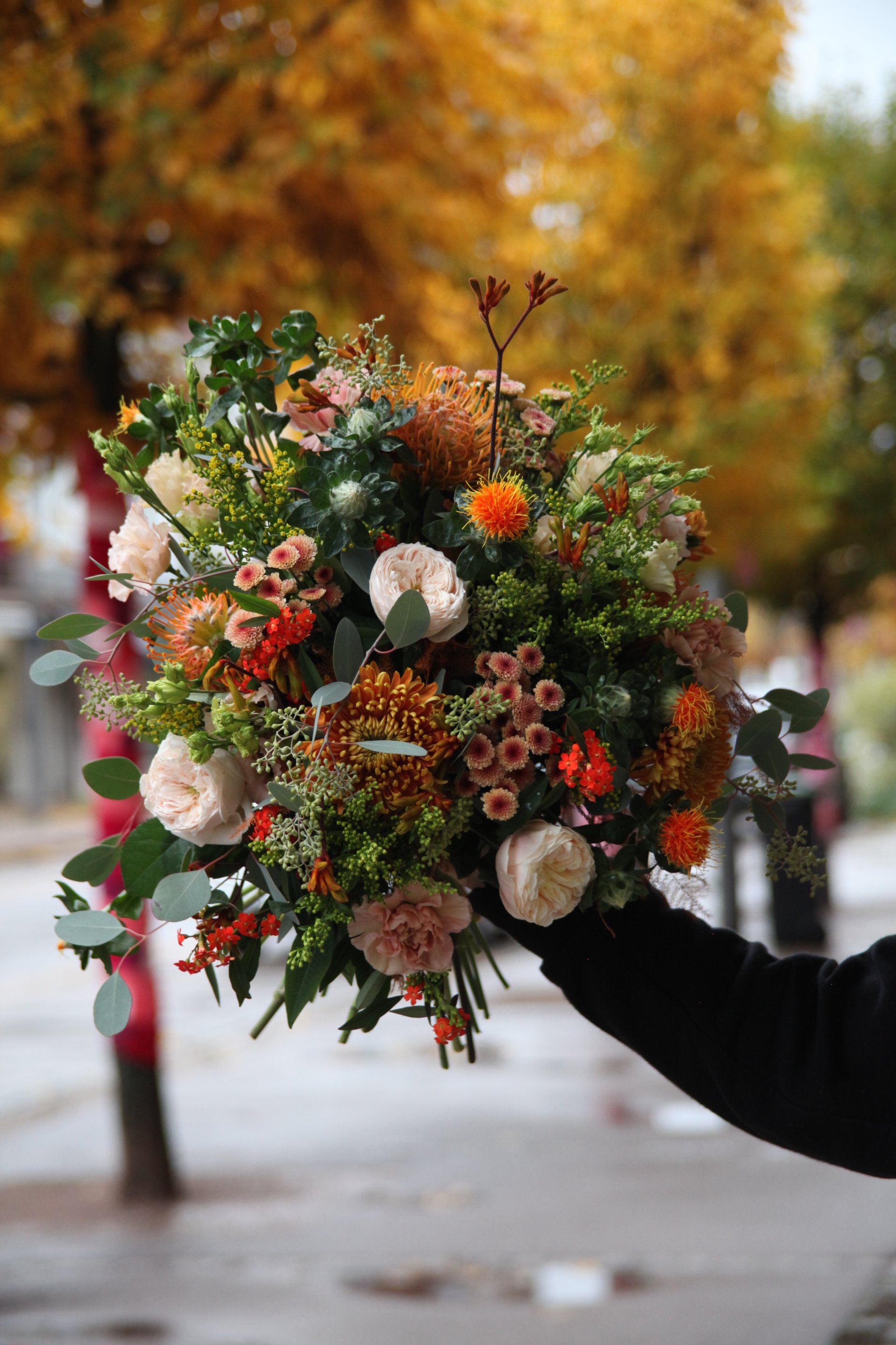 Entretien : nous vous conseillons de mettre le bouquet dans un fond d'eau. Changer l'eau et recouper les tiges tous les 2 jours pour profiter un maximum de votre composition.