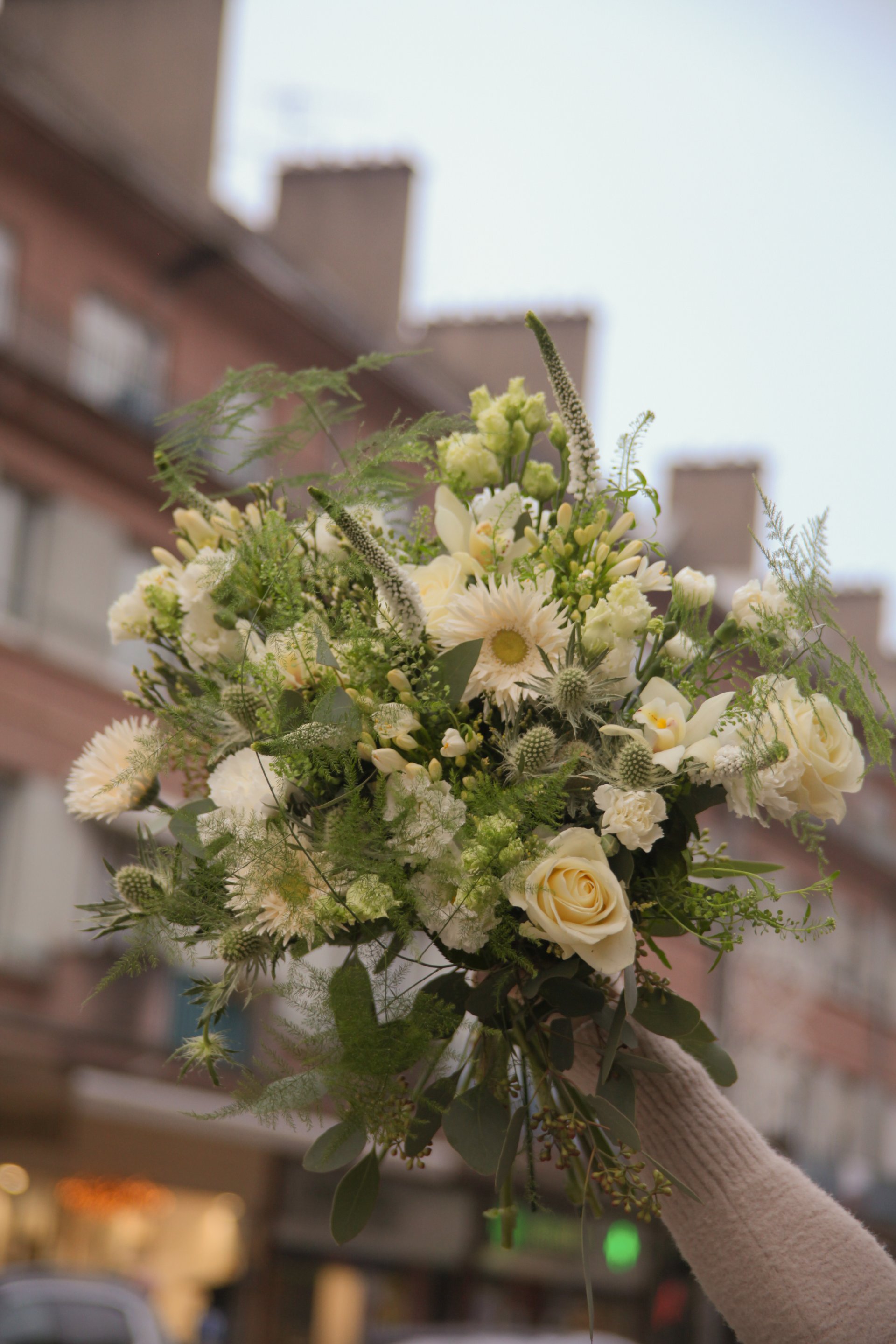 Entretien : nous vous conseillons de mettre le bouquet dans un fond d'eau. Changer l'eau et recouper les tiges tous les 2 jours pour profiter un maximum de votre composition.