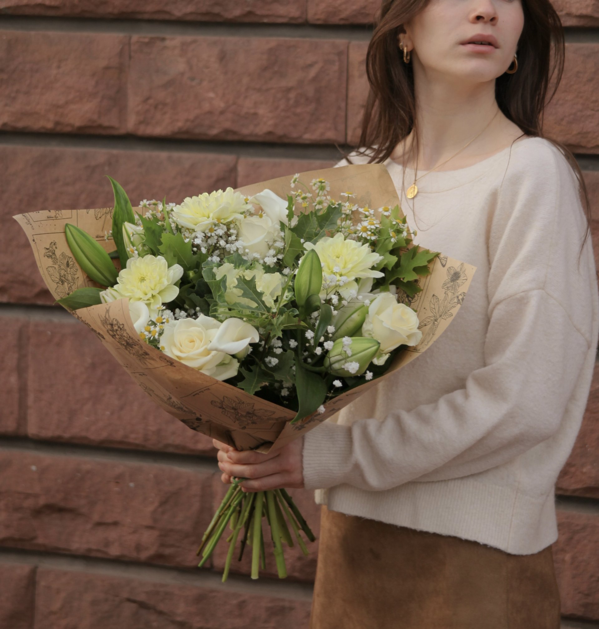 Entretien : nous vous conseillons de mettre le bouquet dans un fond d'eau. Changer l'eau et recouper les tiges tous les 2 jours pour profiter un maximum de votre composition.